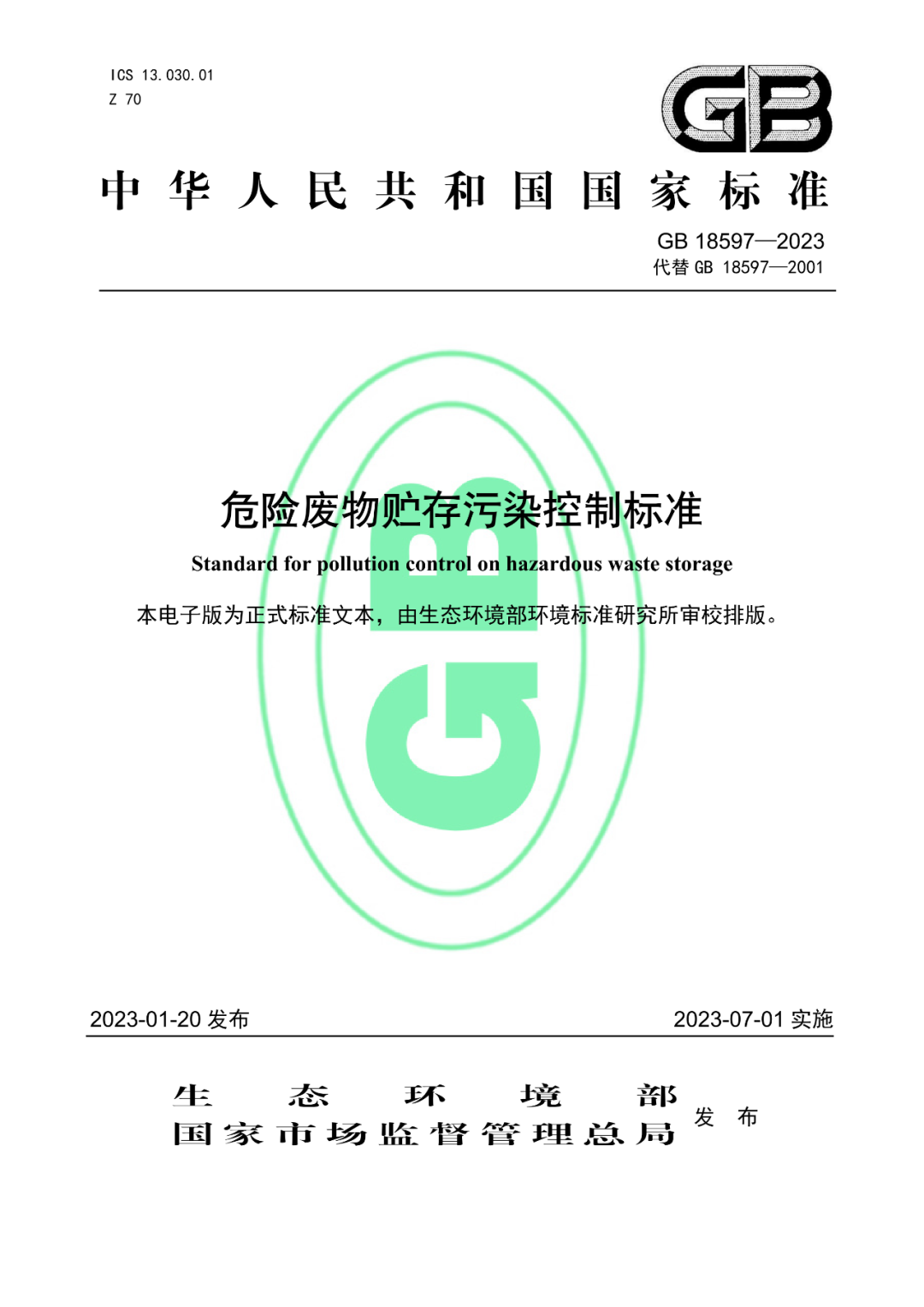 以上标准自2023年7月1日起实施。自以上标准实施之日起,《危险废物贮存污染控制标准》(GB 18597-2001)废止。